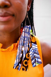 Make any outfit pop with our Ankara wax print earrings. Earrings come in three different lengths and in an assortment of colors. Be Bold and Brilliant as you in stand in your power with AfricaOnMyBack ear adornments.